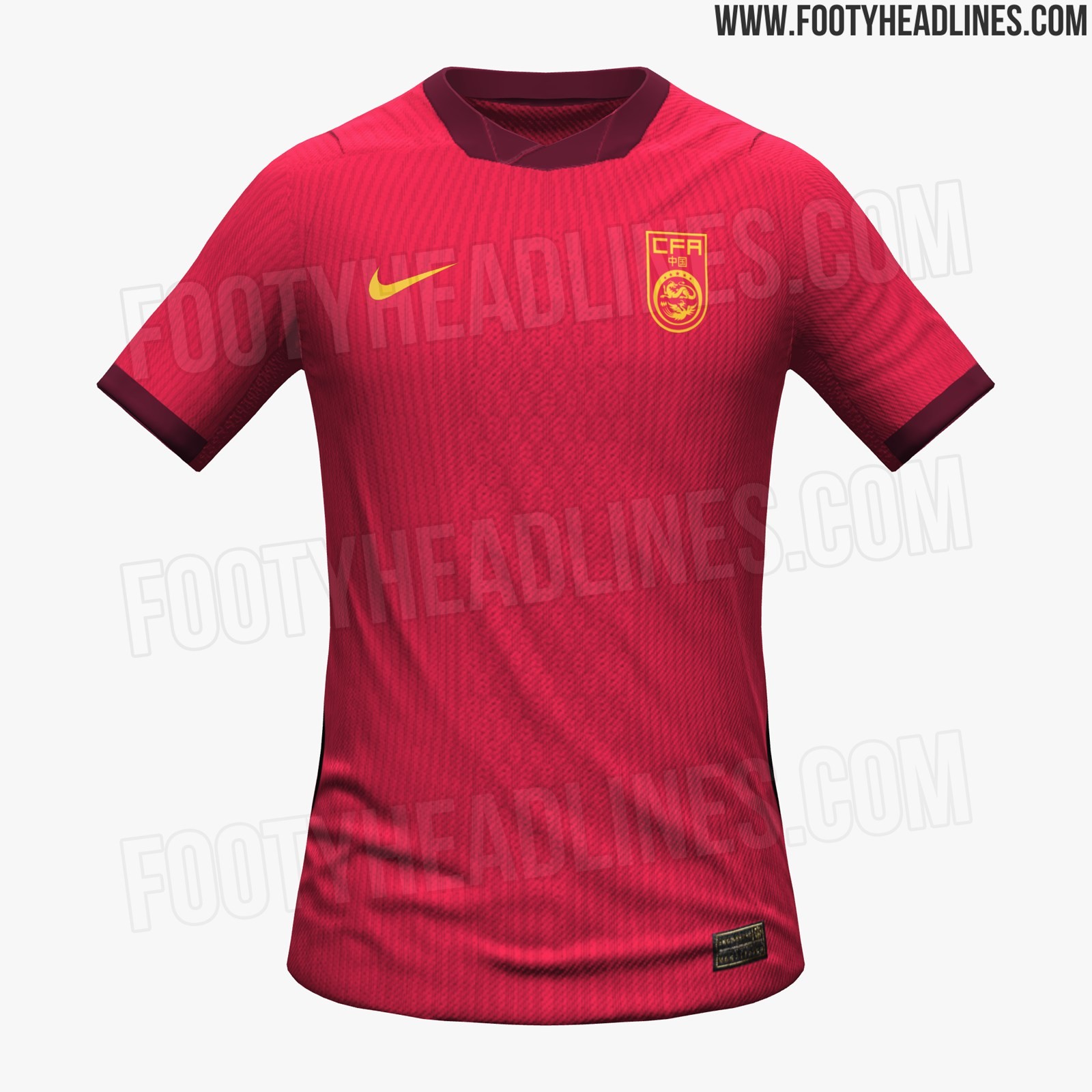 国足2026球衣曝光:主场球衣延续红色配色,客场回归黄色主色调
