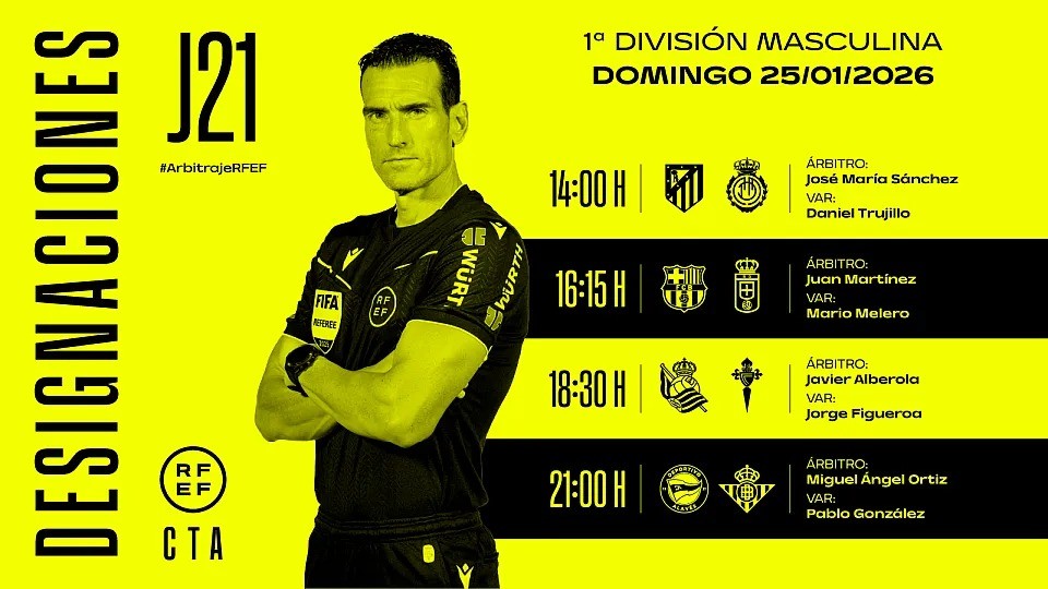 西班牙足协官方公布了周日西甲四场比赛的裁判安排,胡安-马丁内斯将执法巴萨vs皇家奥维耶多。周日西甲裁判安排:马德里竞技vs马略卡主裁:何塞-桑切斯(VAR:丹尼尔-特鲁希略)巴塞罗那vs皇家奥维耶多主裁:胡安-马丁内斯-穆努埃拉(VAR:马里奥-梅莱罗)皇家社会vs塞尔塔主裁:哈维尔-阿尔韦罗拉(VAR:豪尔赫-菲格罗亚)阿拉维斯vs皇家贝蒂斯主裁:米格尔-奥尔蒂斯(VAR:巴勃罗-冈萨雷斯)2026-01-25 00:07:26